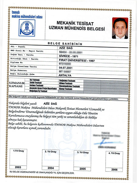 SERTİFİKALAR